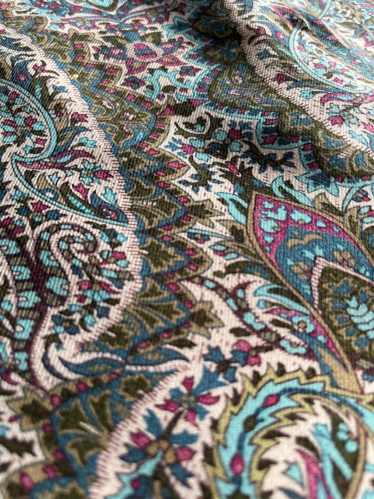 El estampado mezcla tonos neutros con matices en marrones, azules y otros colores suaves, lo que hace que resulte muy fácil de llevar y combinar. Esa riqueza cromática, unida a la ligereza de la pieza, le aporta personalidad sin perder naturalidad.