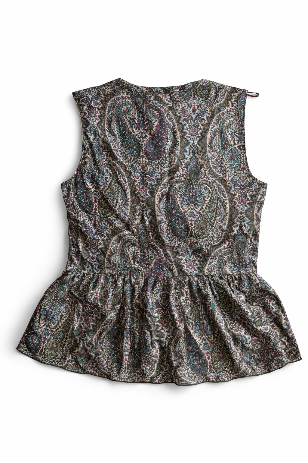 Blusa rescatada y rediseñada a partir de un vestido en desuso, transformado en una pieza ligera, favorecedora y especialmente pensada para los meses de calor. Su silueta mantiene el corte bajo el pecho y se prolonga con un volante que cae hasta la zona de la cadera, aportando movimiento, frescura y una forma muy cómoda de llevar.