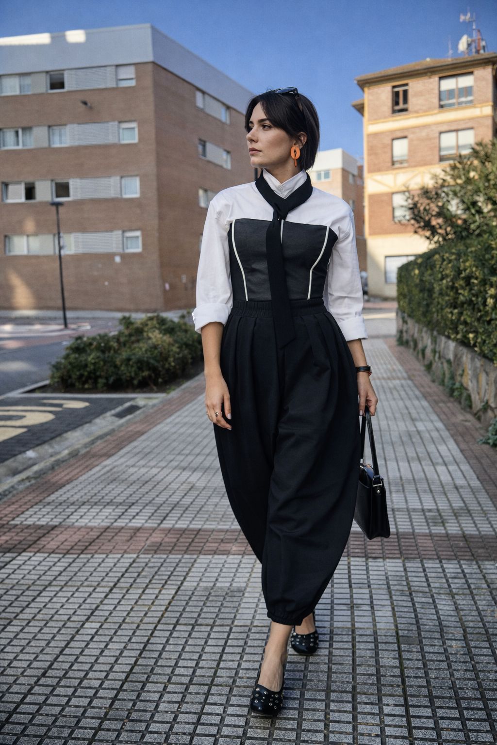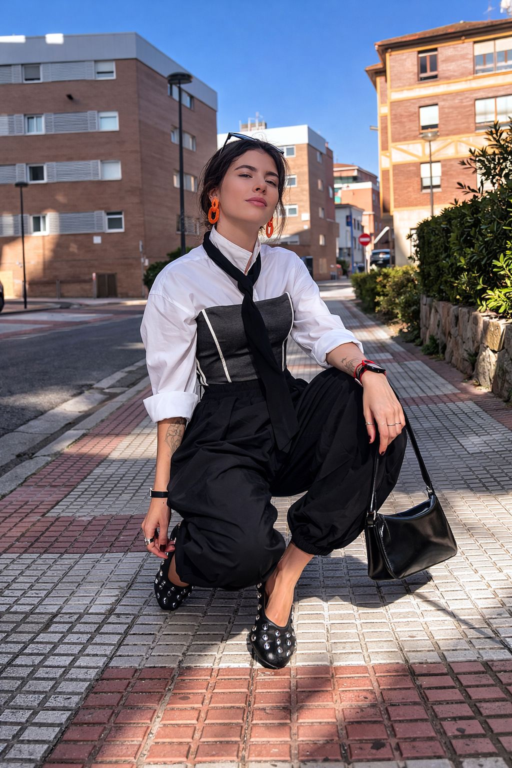 Corsé confeccionado a partir de un pantalón reciclado de tejido ligeramente elástico, reinterpretado en una pieza estructurada y sofisticada que estiliza la silueta y eleva cualquier look. Su diseño alarga visualmente el torso gracias a un corte que se aproxima a la cadera, aportando una línea elegante, marcada y muy favorecedora.